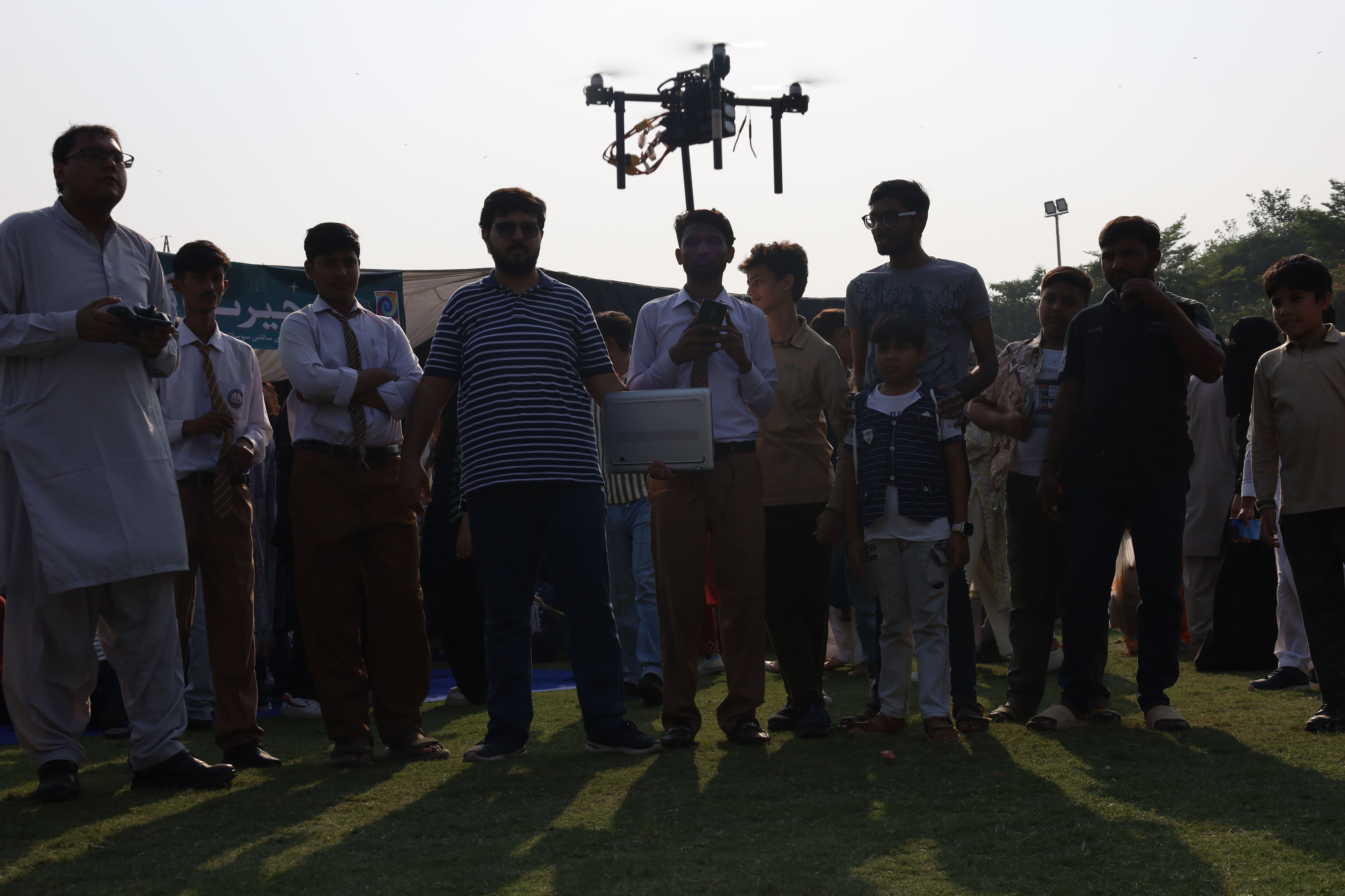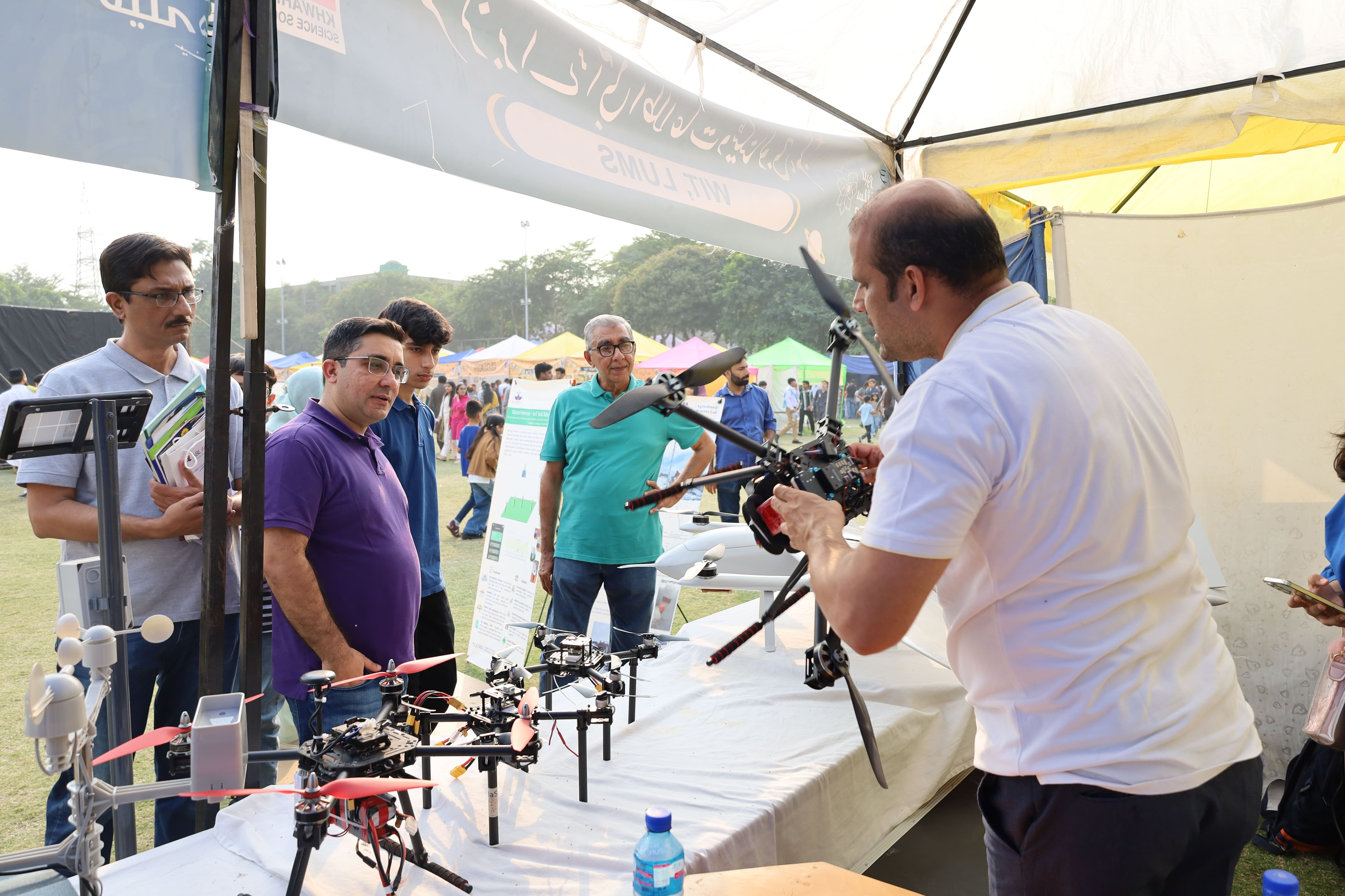 The highlight of WIT’s exhibit was undoubtedly the drone flight demonstrations and remote-controlled RoboMasters, which fascinated attendees of all ages—especially children. Young visitors were guided through the construction and operation of these devices and even had the opportunity to operate them under the supervision of WIT’s representatives. The interactive sessions sparked curiosity, with many students eagerly asking questions about drone mechanics, climate data applications, and how technology can be used to solve Pakistan’s environmental challenges.